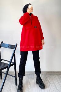 Modalamelif Kapüşon Detaylı Yarım Fermuar Detaylı Polar Armalı Sweat Kırmızı