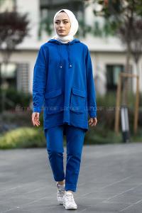 Modalamelif Kapüşon Yaka Torba Kapak Cepli İkili Takım İndigo