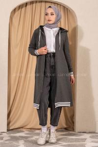 Modalamelif Kapüşonlu Ara Boy Etek Ucu Ribanalı Hırka Antrasit