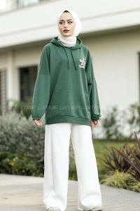 Modalamelif Kapüşonlu Baskılı Sweat Haki