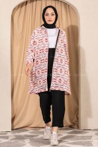 Lamelif Kalp Nakış Detaylı Oversize Hırka Ekru
