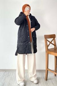 Lamelif Bağlama Detaylı Kapitone Mont Siyah