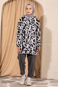 Modalamelif Kapüşonlu Desenli Tunik Siyah