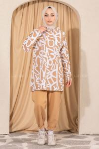 Modalamelif Kapüşonlu Desenli Tunik Sütlükahve