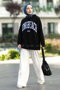 Modalamelif Kapüşonlu Detaylı Yazı Baskılı Sweat Siyah