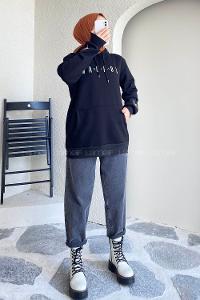 Lamelif Kapüşonlu Salaş Sweatshirt Koyu Lacivert