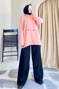 Modalamelif Kapüşonlu Kanguru Cepli Salaş Sweat Pudra