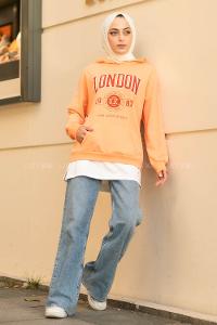 Modalamelif Kapüşonlu London Baskılı Kanguru Cepli Sweat Somon
