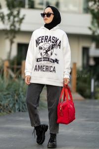 Modalamelif Kapüşonlu Nebraska Baskılı Sweat Beyaz