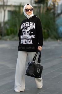 Modalamelif Kapüşonlu Nebraska Baskılı Sweat Siyah