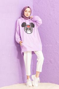 Modalamelif Karikatür Baskılı Sweatshirt Lila