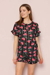 Modalamelif Karpuz Desenli Şortlu Takım Siyah