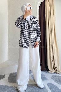 Modalamelif Kazayağı Desen Kapüşonlu Gömlek Siyah
