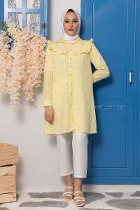 Lamelif Flores Fırfırlı Tunik Çağla Yeşili