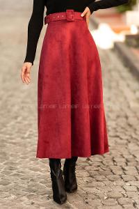 Modalamelif Kemer Detaylı Süet Etek Bordo