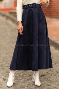 Modalamelif Kemer Detaylı Süet Etek Lacivert
