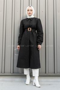 Lamelif Pelican Ön Düğmeli Trençkot Siyah