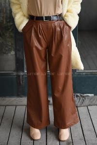 Modalamelif Kemerli Bol Paça Deri Pantolon Taba