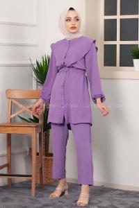 Modalamelif Kemerli Gömlek İkili Takım Eflatun