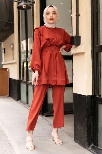 Modalamelif Kemerli Gömlek İkili Takım Kiremit