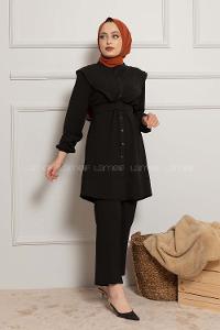 Lamelif Balance Armalı Çımalı İkili Tesettür Takım Siyah