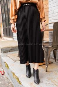 Lamelif Önü Pileli Scuba Kumaş Etek Siyah