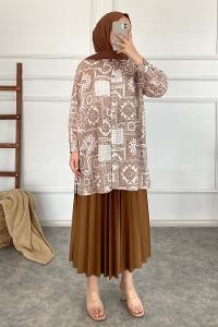 lamelif Piliseli Uzun Gömlek Acı Kahve