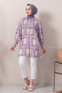 Modalamelif Kilim Desen Dijital Baskı Gömlek Mor