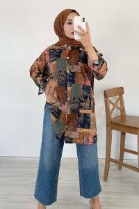 Lamelif Omuz Vatka Detaylı Tesettür Gömlek Acı Kahve