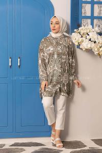 Lamelif Omuz Vatka Detaylı Tesettür Gömlek Yağ Yeşili