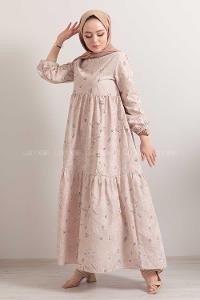 Lamelif Elica Tesettür Elbise Taş Rengi