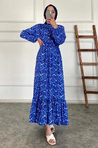 Modalamelif Kır Çiçeği Desenli Elbise Mavi