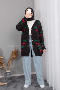 Lamelif Düğme Detaylı Çizgili Hırka Siyah