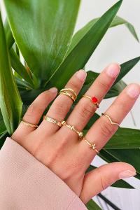 Modalamelif Kırmızı Detay Gold 7li Eklem Yüzük
