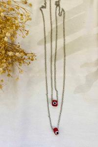 Modalamelif Kırmızı Taş Detaylı Zincir kolye