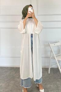 Lamelif Puf Scuba Kimono Beyaz