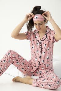 Modalamelif Kısa Kollu Uyku Bantlı 5 Düğme Pijama Takımı