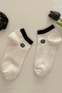 Lamelif Kalp Nakış İşlemeli Beyaz Tenis Çorap