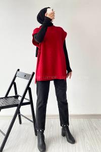 Modalamelif Kol Altı Bağcıklı Yırtmaçlı Süveter Kırmızı