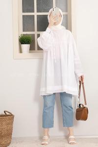 Modalamelif Kol Bağlamalı Tunik Beyaz