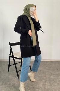 Modalamelif Kol Bağlamalı Uzun Ceket Siyah