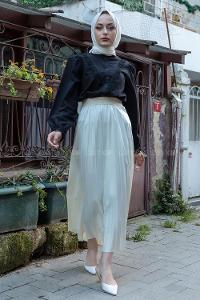 lamelif Piliseli Uzun Gömlek Siyah