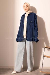 Lamelif Dekoratif Cep Detaylı Tesettür Ceket Lacivert