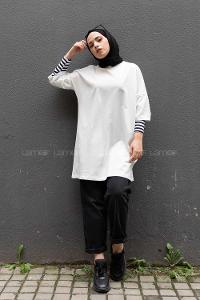 Modalamelif Kol Çizgili Sweatshirt Beyaz