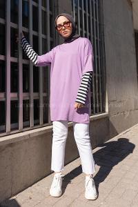 Modalamelif Kol Çizgili Sweatshirt Lila