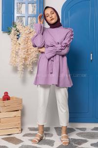 Modalamelif Kol Fırfırlı Kuşaklı Tunik Lila