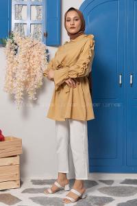 Lamelif Manşeti Biyeli Tunik Acı Kahve