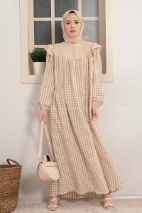 Lamelif Elica Tesettür Elbise Taş Rengi