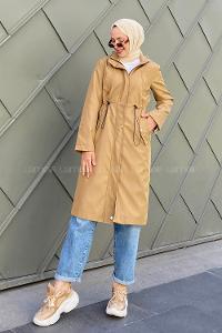 Modalamelif Kol Katlamalı Kapşonlu Trenç Camel