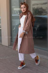 Lamelif Kol Kemerli Trençkot Vizonrengi